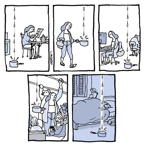 É parecido com o que senti, depois de todos esses dias, ao ver as paredes ainda sujas com a marca da inundação nos arredores da rodoviária de Porto Alegre. Muitas coisas não puderam — e não podem — esperar até que se refaça a cidade, sobretudo aquilo que se quebrou por dentro. Então estamos todos meio gelados, entrando numa panela de água fervente. Os caixas automáticos da rodoviária ainda estavam sujos quando me aproximei, sem ilusões, há duas segundas-feiras. É um lugar onde eu repousava meus dedos frios toda a semana para sacar só o estritamente necessário — para o ônibus entre Pelotas e Jaguarão, para o táxi dormindo no retorno — e agora está ali, apagado como um morto.